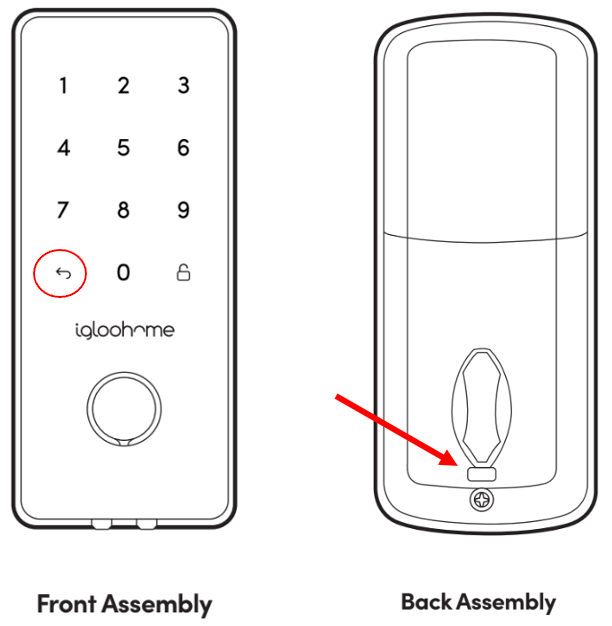Find the “Back” or “Return” symbol on the keypad of the lock