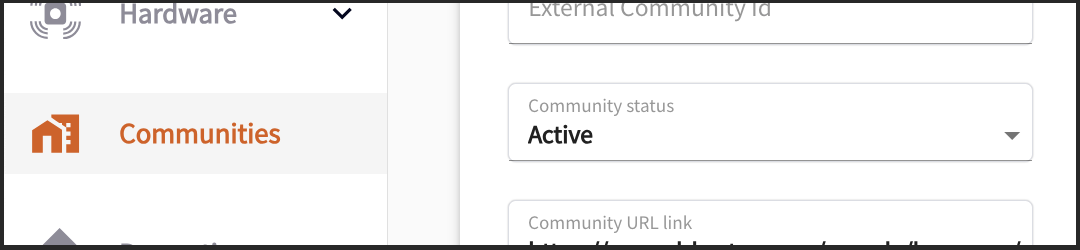 - Once you enter the details for the new community be sure to update the Community Status to “Active” and then save.
